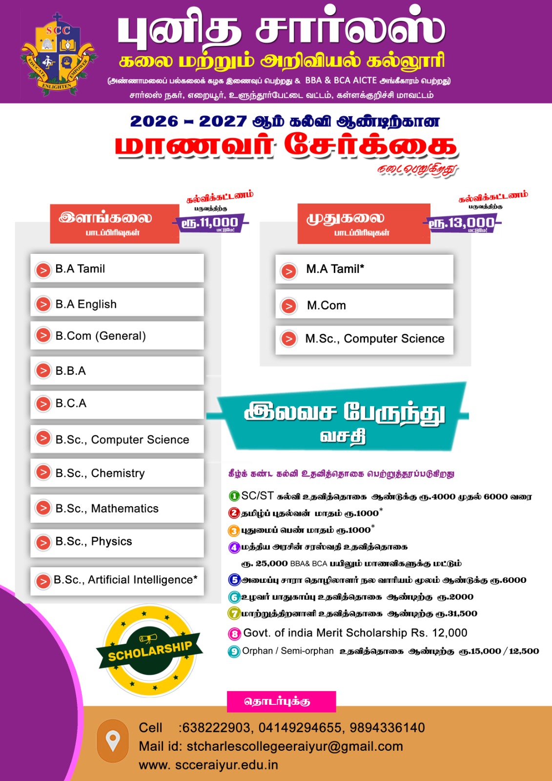 © 2026 St. Charles College of Arts and Science, Eraiyur. All Rights Reserved. Powered by Bosco Soft Technologies Pvt. Ltd.
