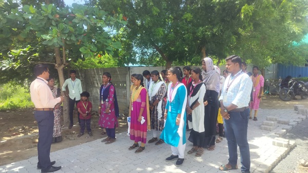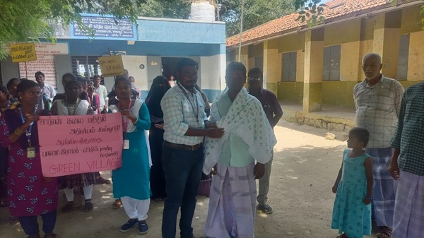 The event began with the honoring of the Head of the Village, Mr. Sirajdeen, who was felicitated by Mr. Dominic Zavio. Mr. Arockiyasami, Headmaster of the Middle School, Pillaiyar Palayam, was also honored by a student of III B.A. English.